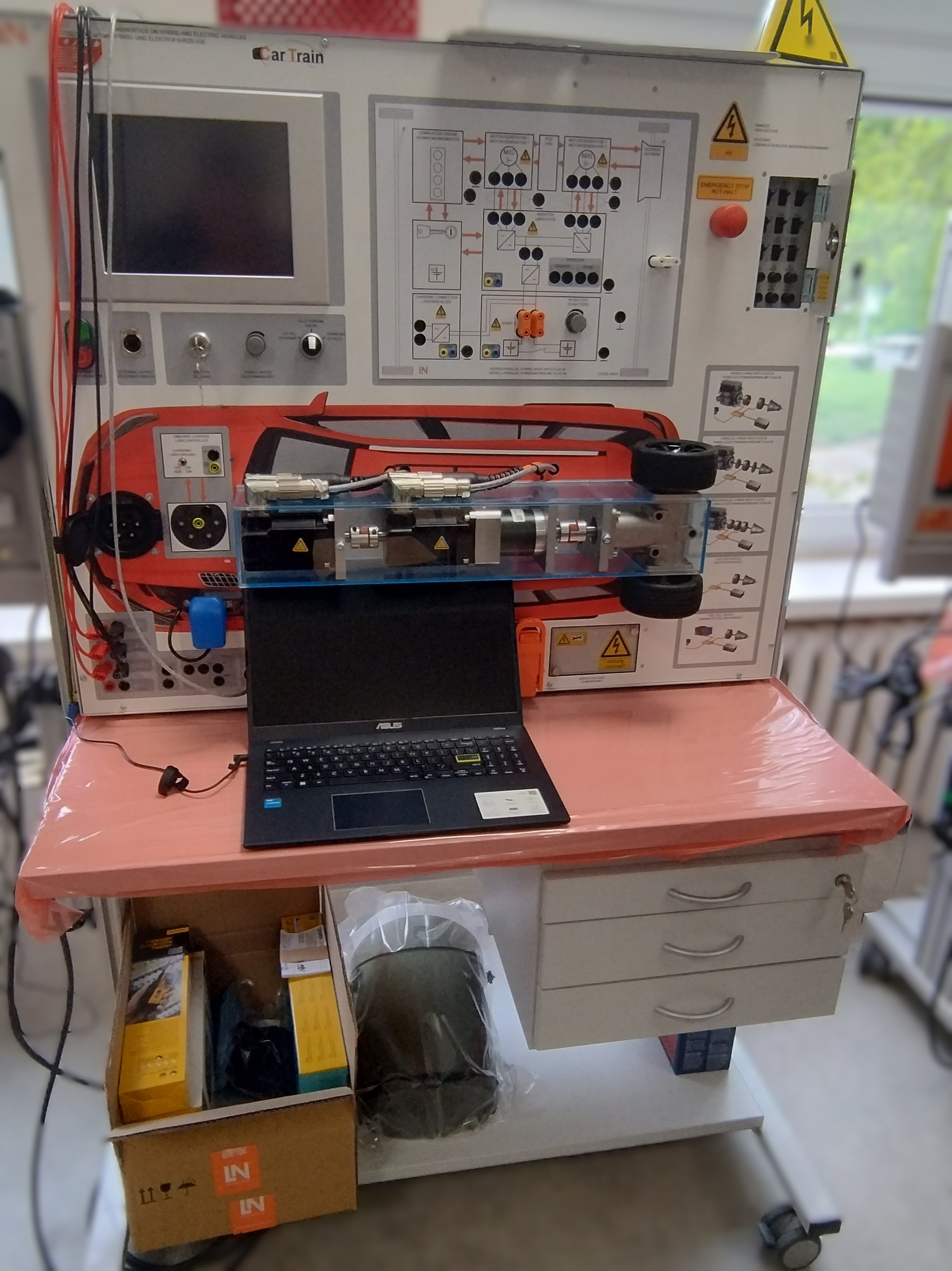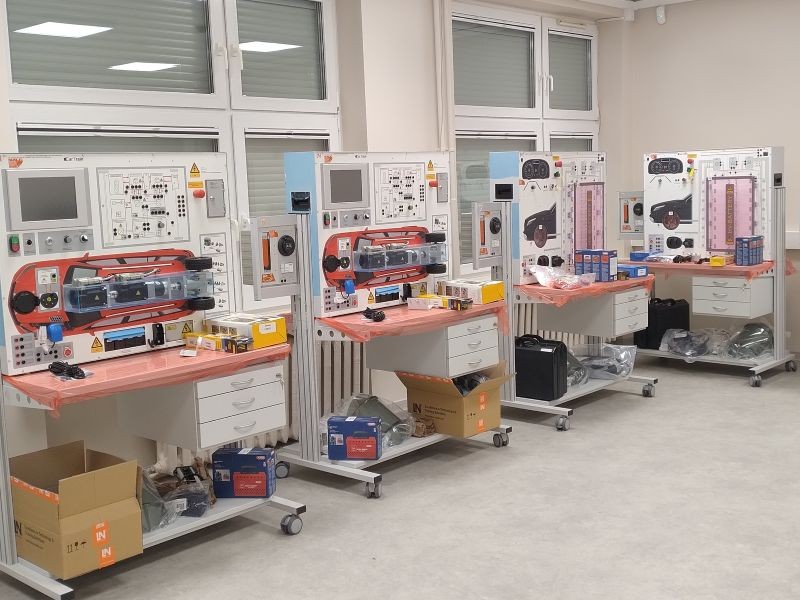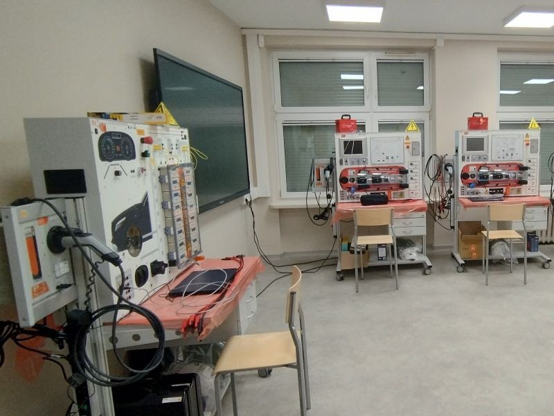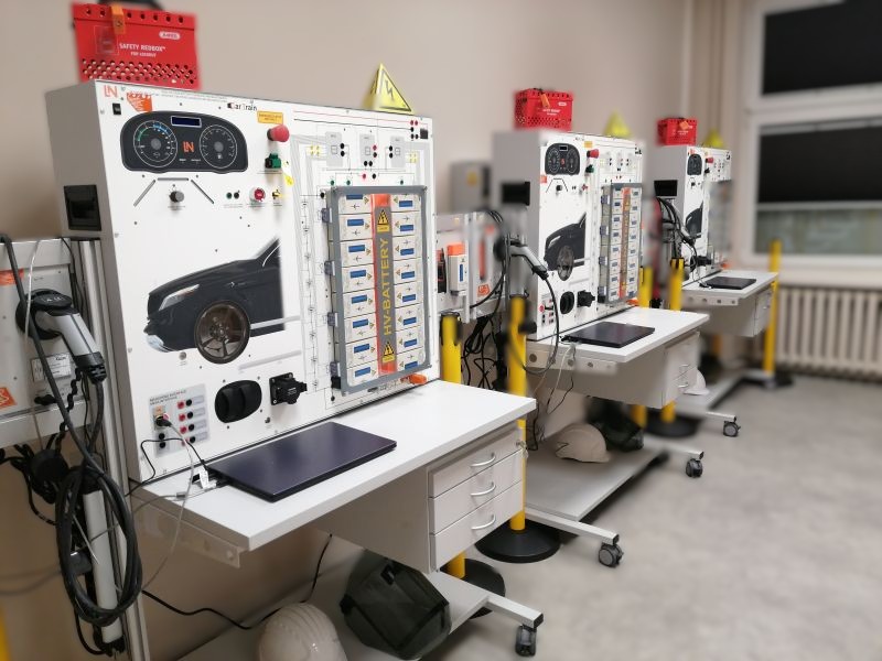 Pracownia jest przeznaczona do wykonywania ćwiczeń z zakresu diagnostyki obsługi pojazdów elektrycznych w części rzewodowe i bezprzewodowe systemy sterowania i kontroli pojazdu.