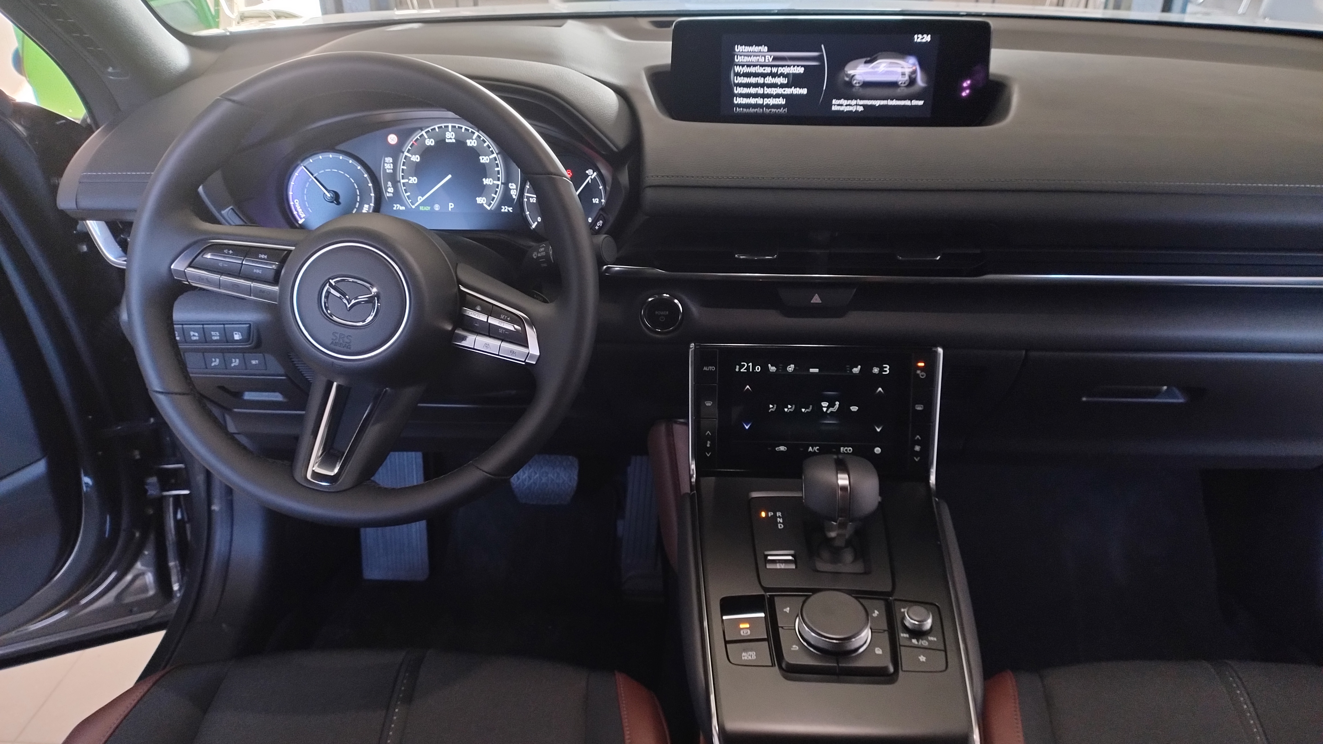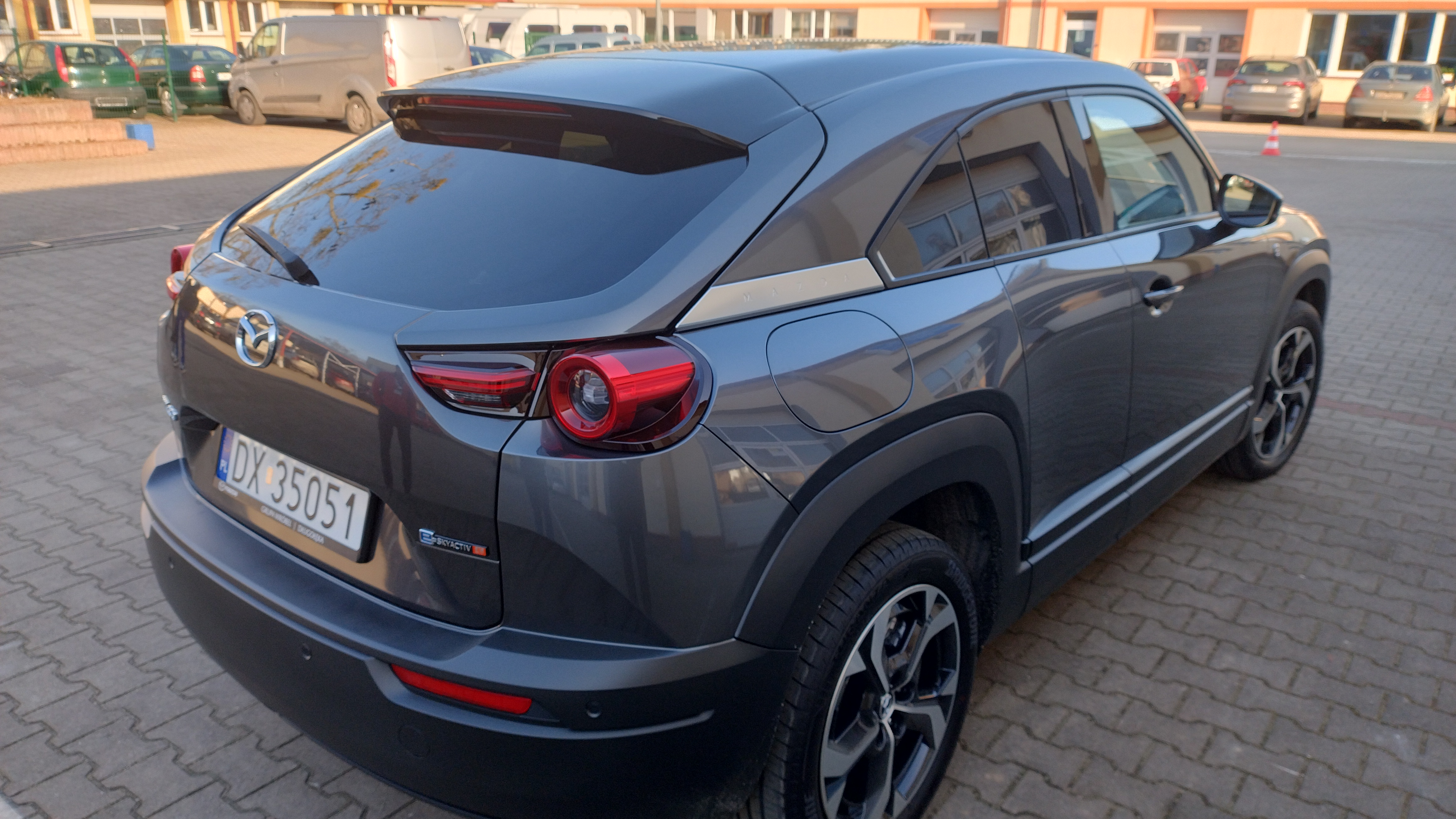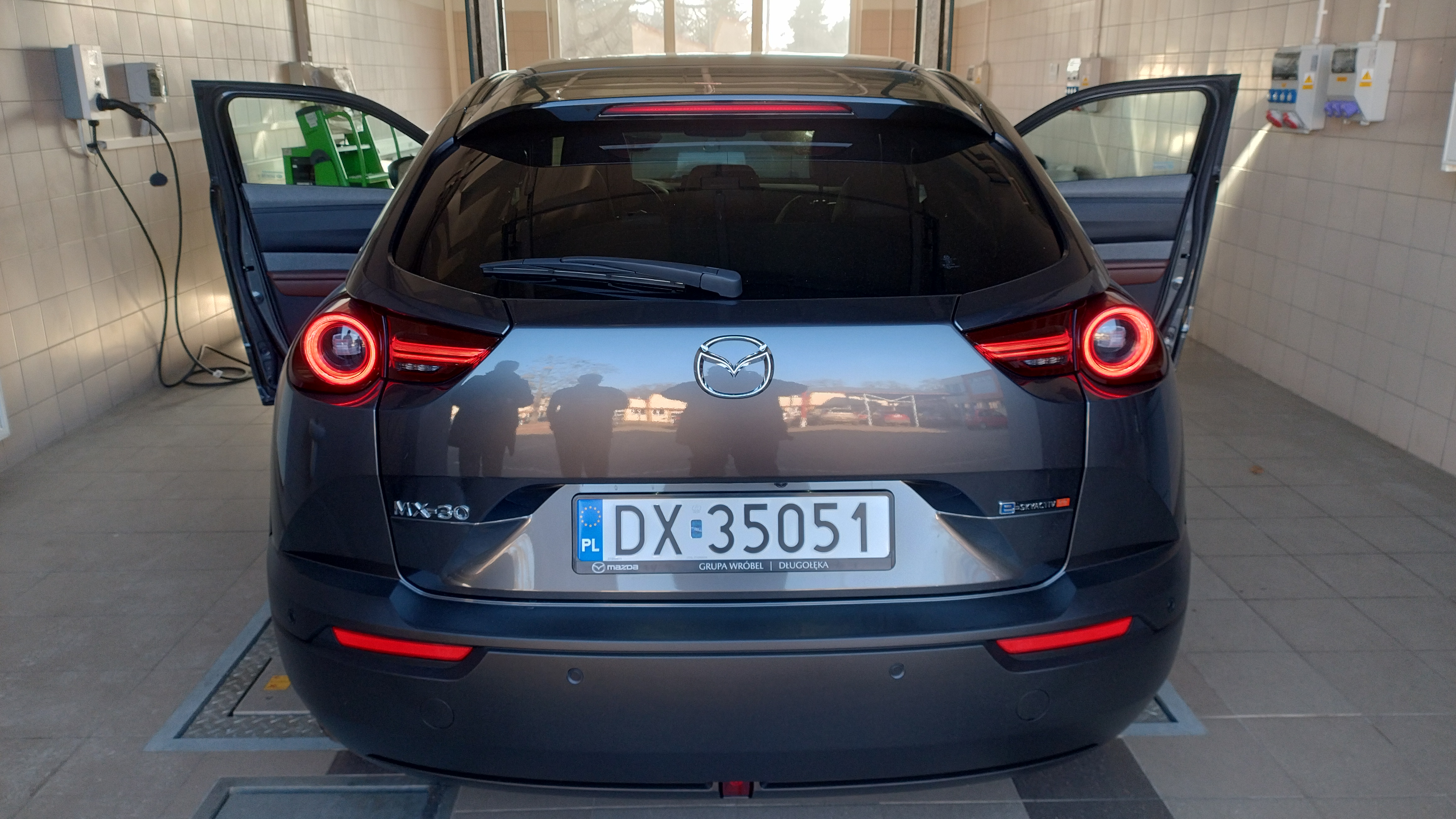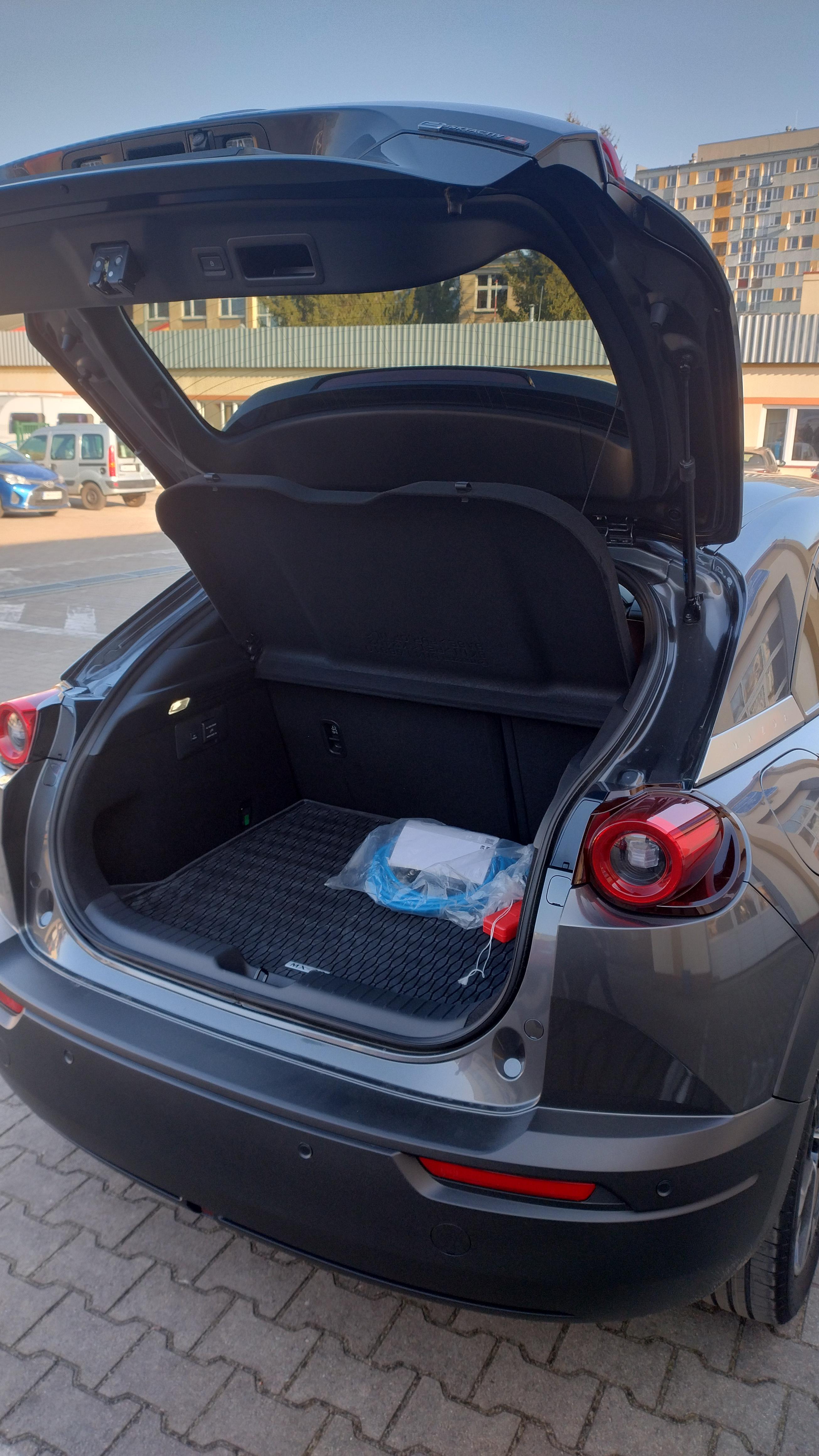 Mazda MX-30 – ładowanie Pojemność baterii litowo-jonowej to 17,8 kWh. Można ją ładować prądem zmiennym (7,2 lub 11 kW) lub stałym (z maksymalną mocą 36)